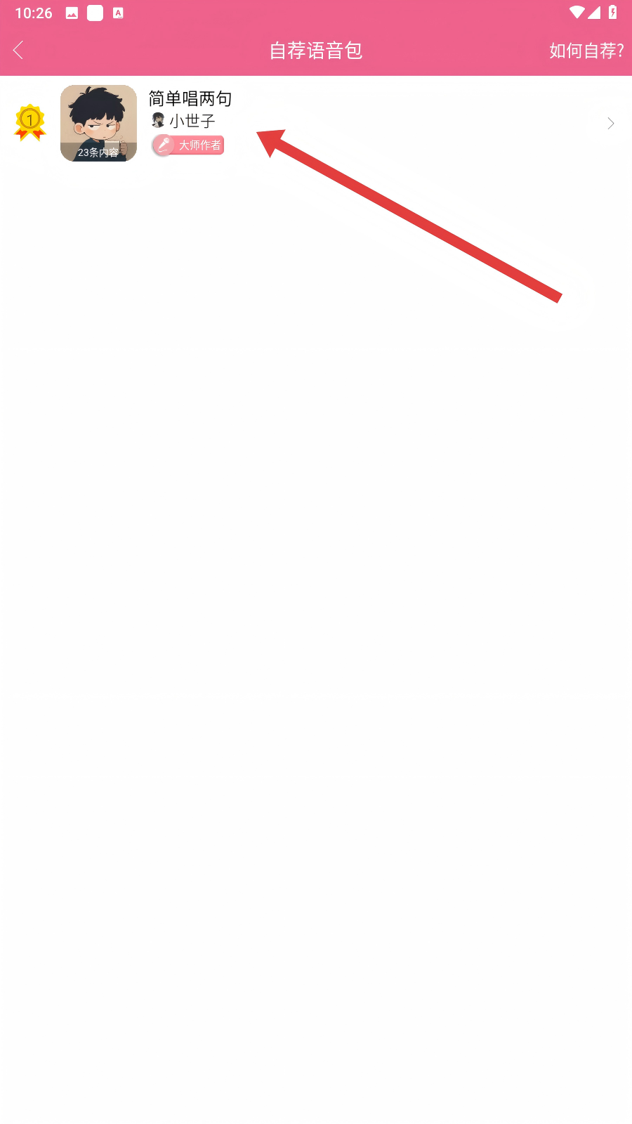 2、在自荐语音包页面,我们选择【简单唱两句】语音包,点击进入其详情界面呢。