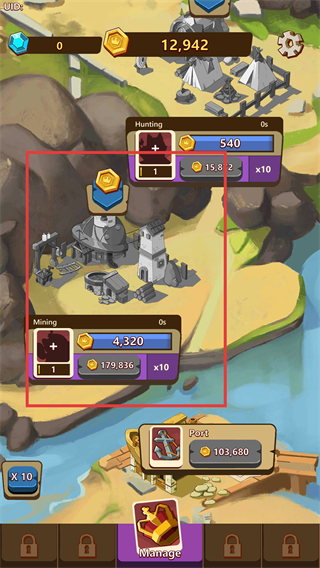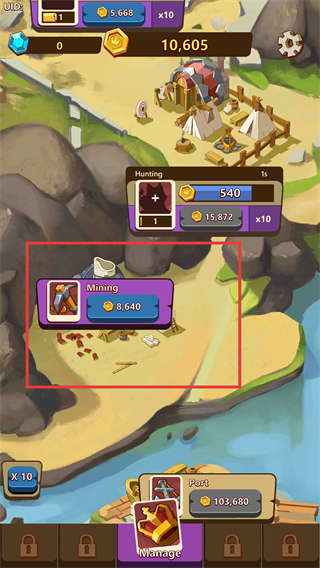 4、收集【Mining】的金币,加速金币积累,解锁高级建筑。