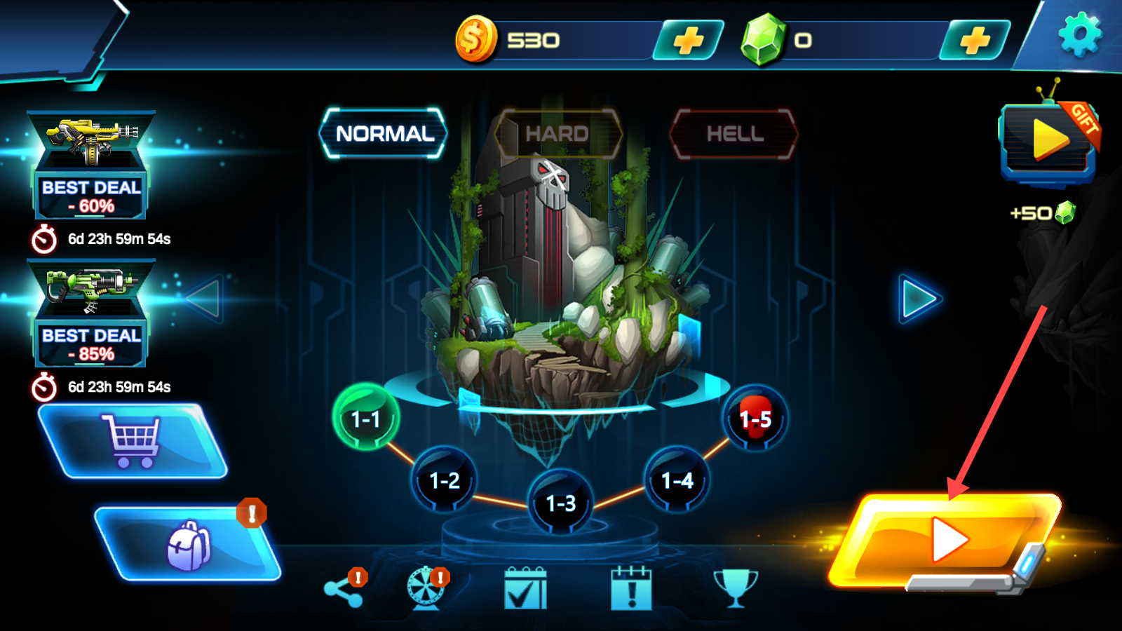 3、通关后玩家点击指示处图标即可进入下一关