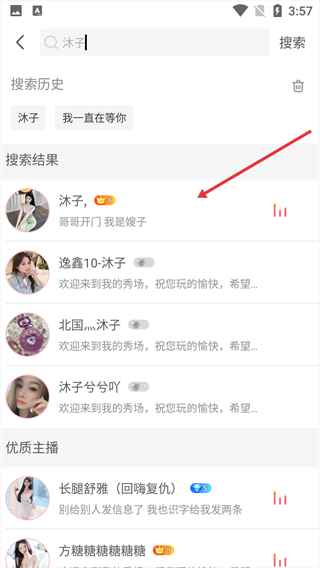 2、在搜索结果页面,找到要关注的主播。