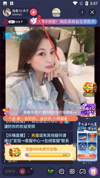 3、进入其直播间,点击主播头像旁的“+”按钮。