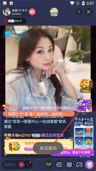 4、特色礼物玩法:自带美颜特效,支持双人直播互动,用户可通过赠送炫酷礼物、参与趣味小游戏,与主播亲密互动。
