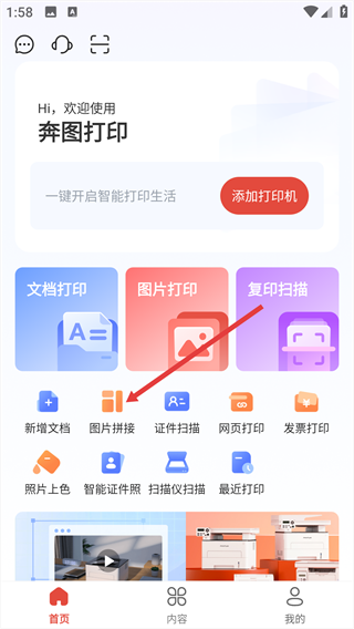 1、进入APP首页,找到并点击【图片拼接】功能选项。
