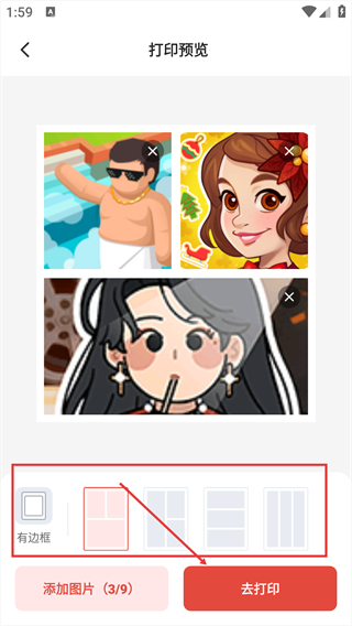 3、进入打印预览界面,选择对应的图片拼接排版样式,确认拼接效果后点击【去打印】按钮。