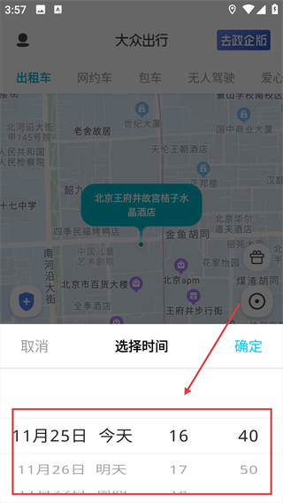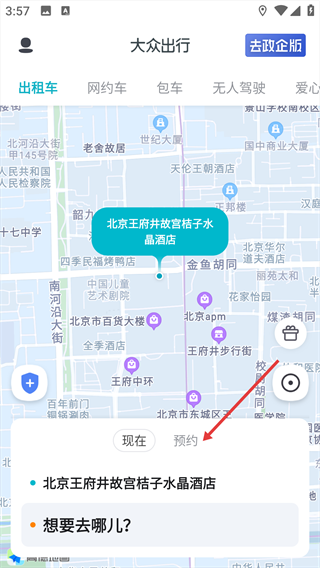 1、打开app,点击“预约”选项,进入行程时间设置环节。