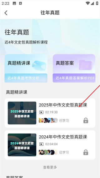 3、在【往年真题】页面,选择目标真题课程。
