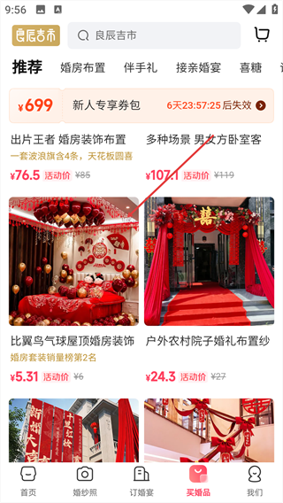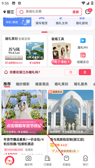 1、在婚礼服务主界面,点击底部【买婚品】选项。