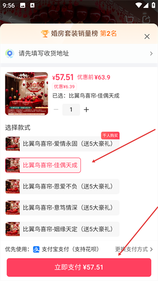 4、选择目标款式,确认后点击【立即支付】完成购买。