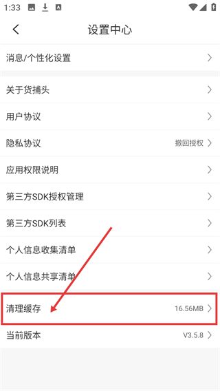 3、在设置中心页面,可看到【消息/个性化设置】等选项,找到【清理缓存】项。
