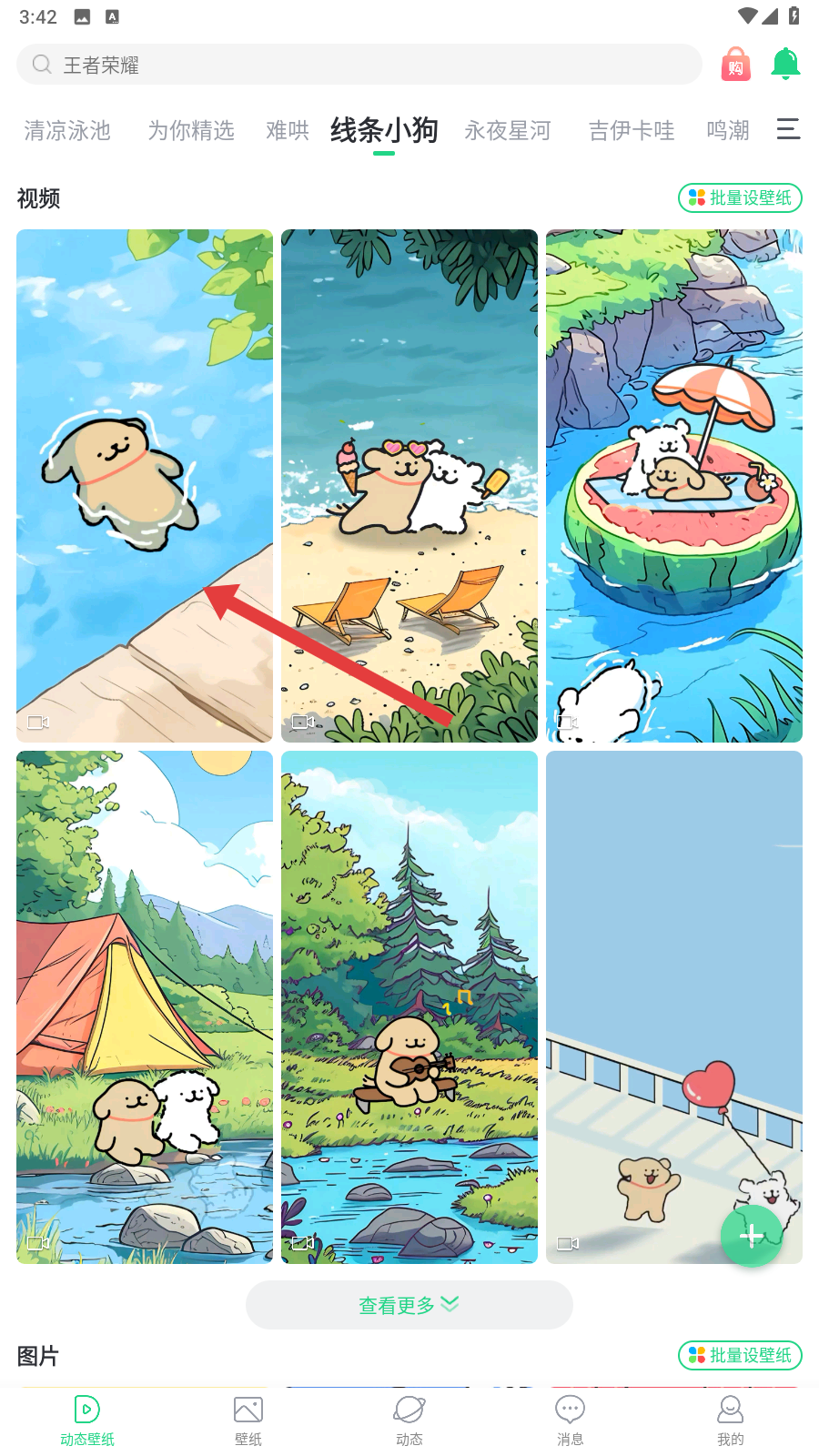 3、在【线条小狗】主题下,找到喜欢的动态壁纸,点击进入啦。
