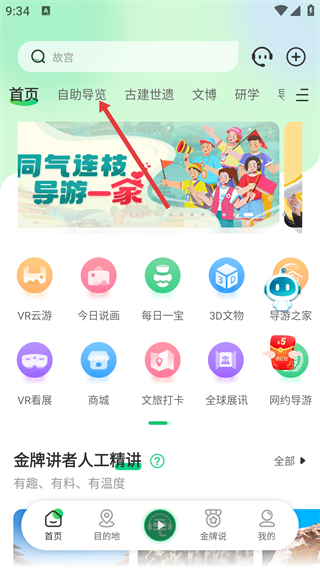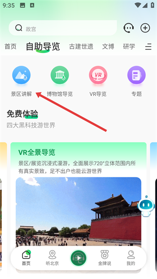 2、进入【自助导览】后,我们点击【景区讲解】,就能看到各类景区和博物馆的导览选项啦。