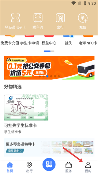 1、在特种卡申请页面,按需点击【琴岛通学生卡】等卡片的【去办理】,申请相应卡片。