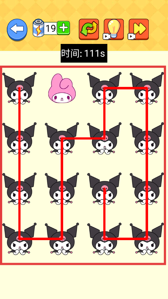 3、仔细观察关卡中图案的分布,如图案的位置、种类等,像红框内的图案布局,通过划线将相同的图案连接起来。