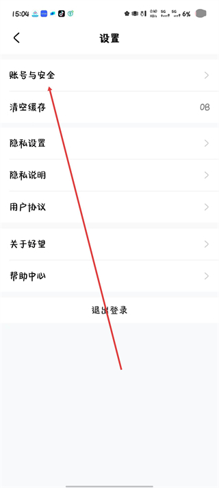 2、进入设置功能界面,点击账号与安全选项。