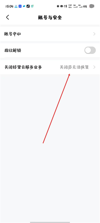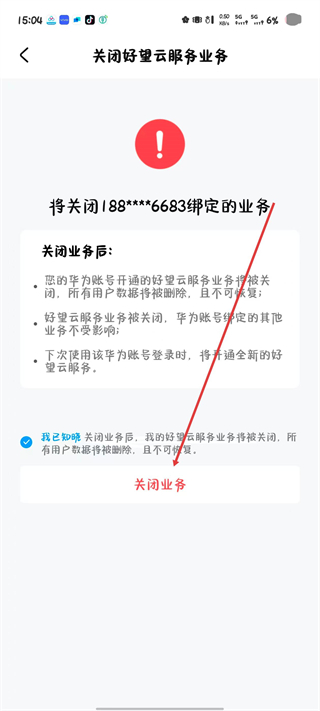 3、点击之后,点击关闭好望云服务业务选项。