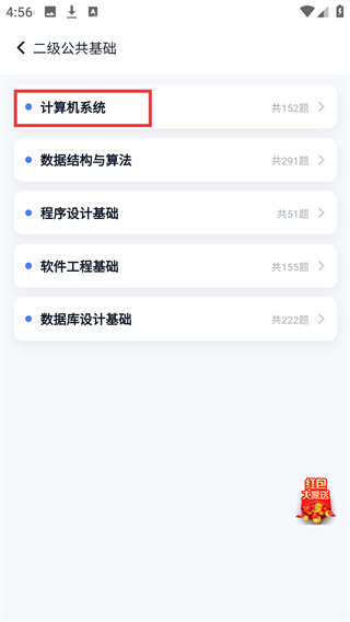 3、在【二级公共基础】页面,找到【计算机系统】章节并点击,可进入该章节的题目练习环节。