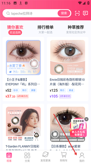 针对不同瞳色(深中浅)提供可参考的佩戴图,真实评价可同步生成美瞳记录册!