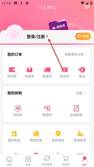 2、进入该页面后,找到【登录/注册】选项并点击,可进入登录界面。