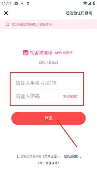 4、切换到该登录界面后,依次填写【请输入手机号/邮箱】【请输入密码】信息,勾选协议后点击【登录】完成操作。