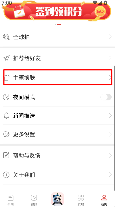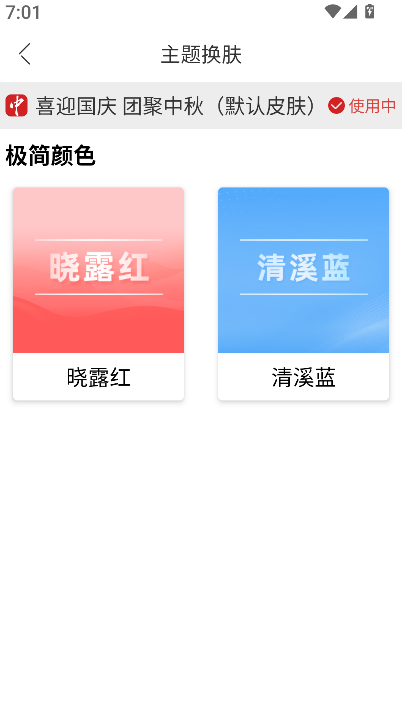 2、在个人中心中找到“主题换肤”功能,点击进入可查看多种界面主题颜色选项。