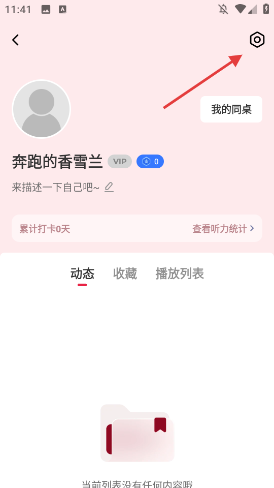 2、在个人主页点击右上角设置图标,进入设置页面。