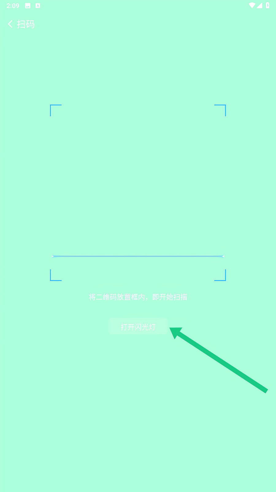 4、进入扫码界面后,将二维码放入扫描框内,若光线不足可点击【打开闪光灯】,轻松完成扫码操作呢。