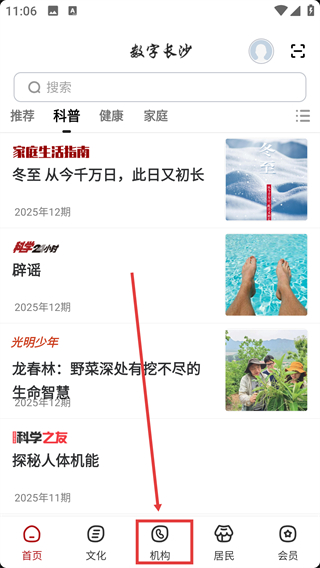 1、在界面底部找到【机构】按钮并点击,可进入对应功能板块。