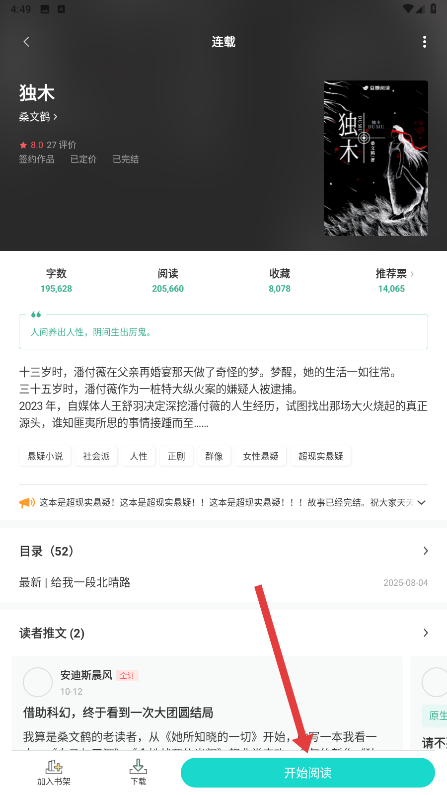 2、在书籍详情页,点击【开始阅读】,进入阅读界面,朝着听书功能稳步迈进啦。