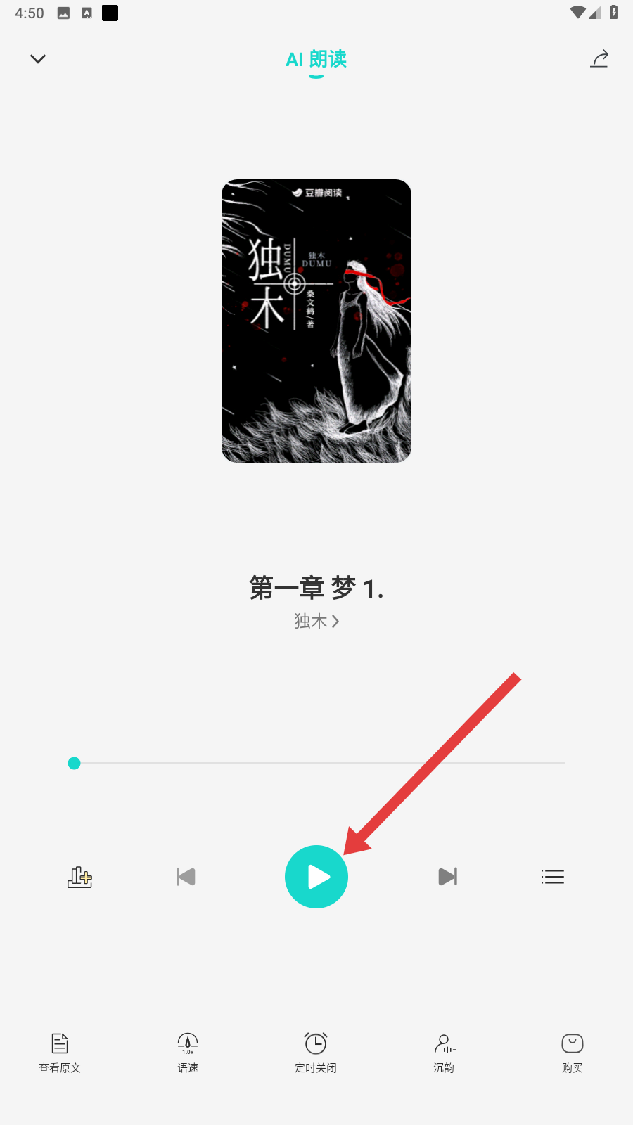 4、进入【朗读】界面后,点击播放按钮,便能享受书籍的语音朗读哦。
