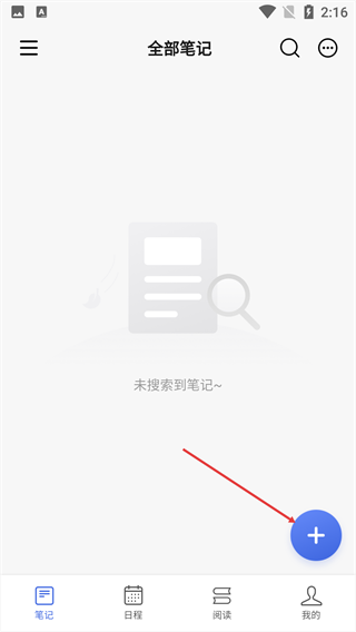 1、打开app,点击右下角蓝色加号按钮,创建一条新笔记。
