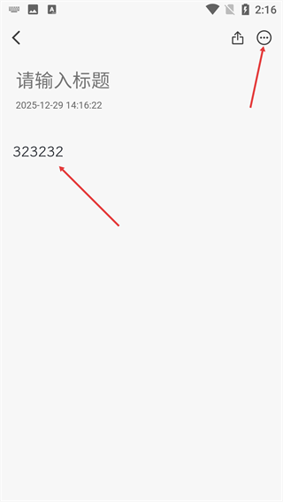 2、在编辑页面输入内容后,点击右上角的三点按钮,打开功能操作菜单。