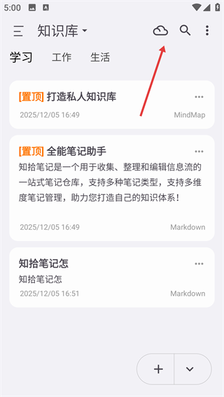 2、进入APP主界面,点击底部的【+】按钮,创建新笔记。