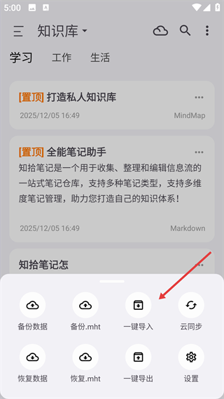 2、在功能菜单中选择“一键导入”选项,进入本地文件选择页面。