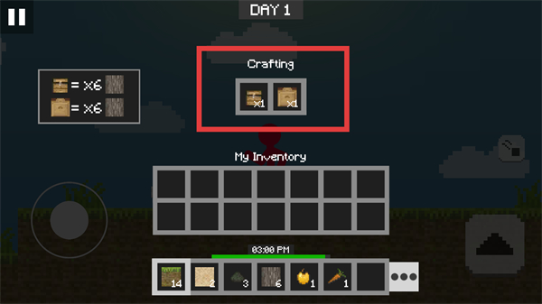 3、像素建造系统:利用木材、石块等材料搭建独立建筑物,从简陋木屋到坚固堡垒,打造专属生存基地,解锁更多建造蓝图。