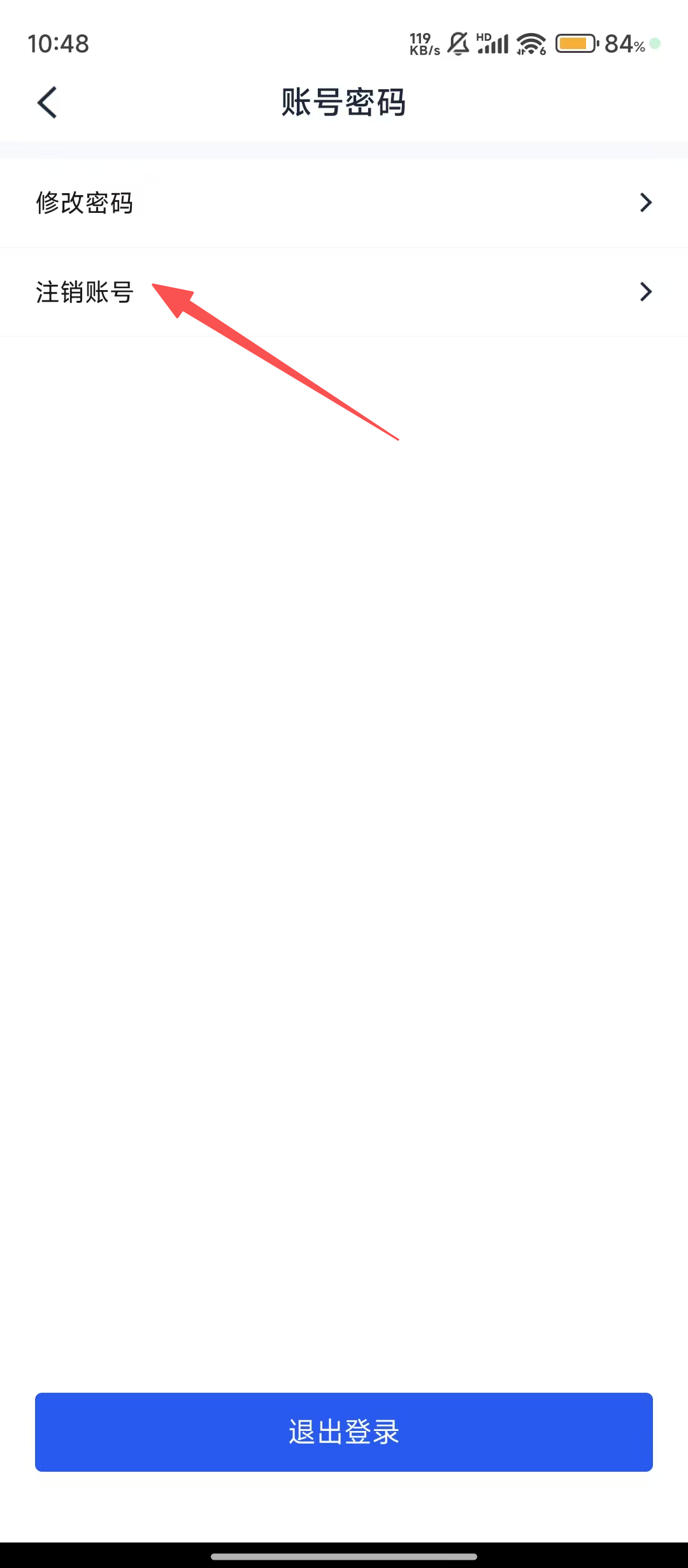 3、进入账号密码页面后,点击【注销账号】选项,即可进入注销确认环节哟。