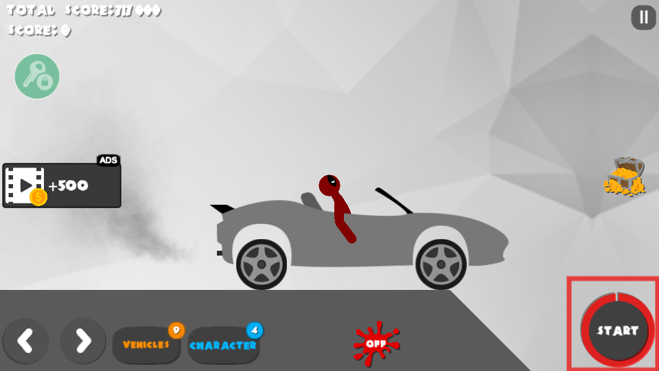 2、选择载具后,点击右下角【START】按钮,让载具带动火柴人开始移动。