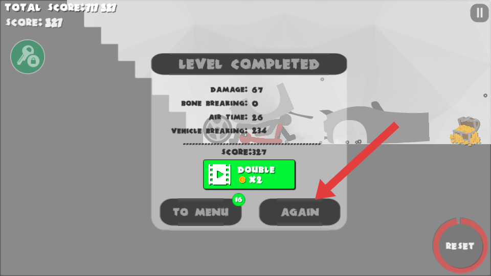 4、关卡完成后,点击【AGAIN】按钮可再次挑战,尝试获取更高分数。