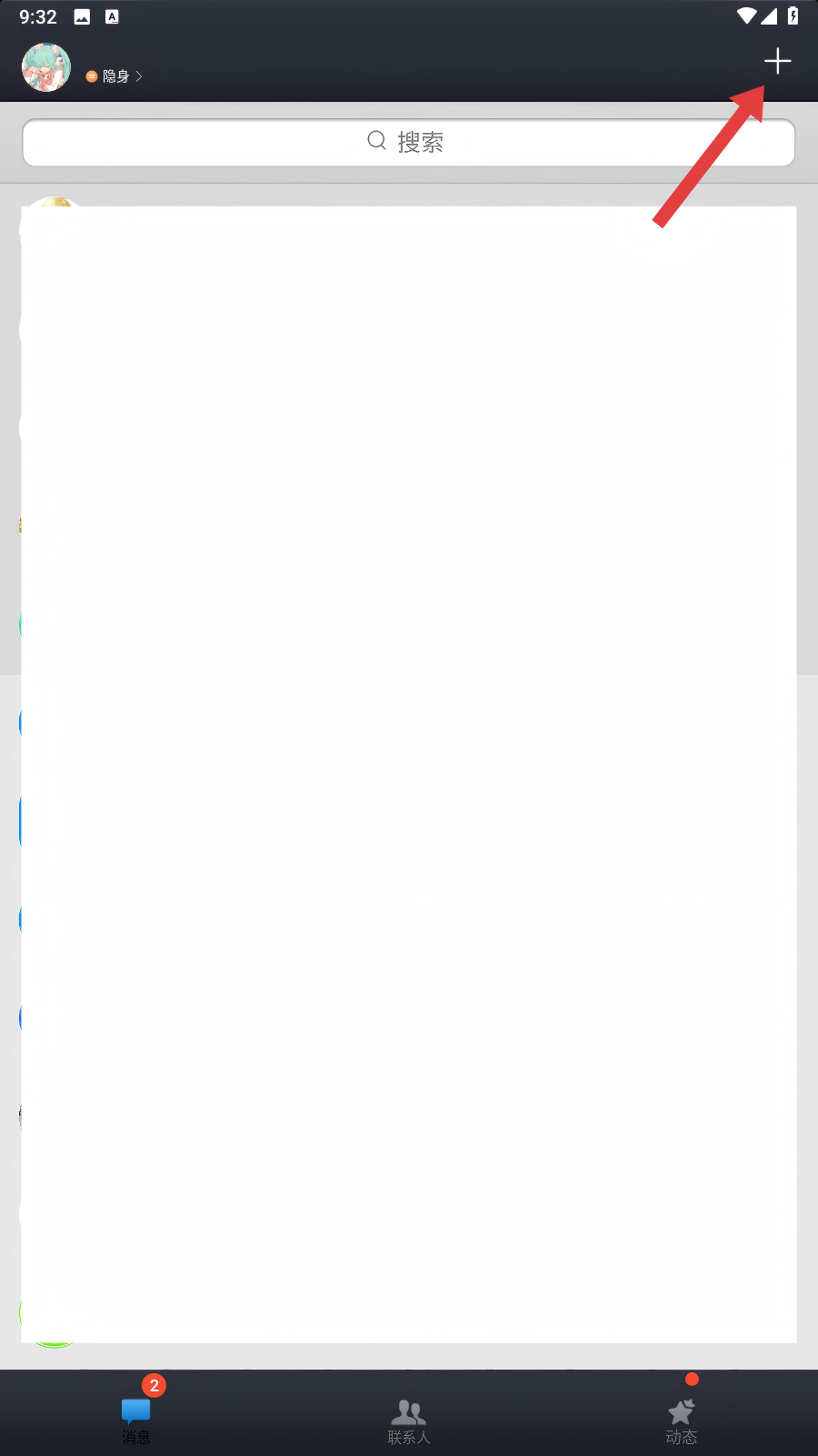 1、进【QQ】后,瞧见右上角的【+】号啦,点它就能展开更多功能选项,这步可得记牢哟。