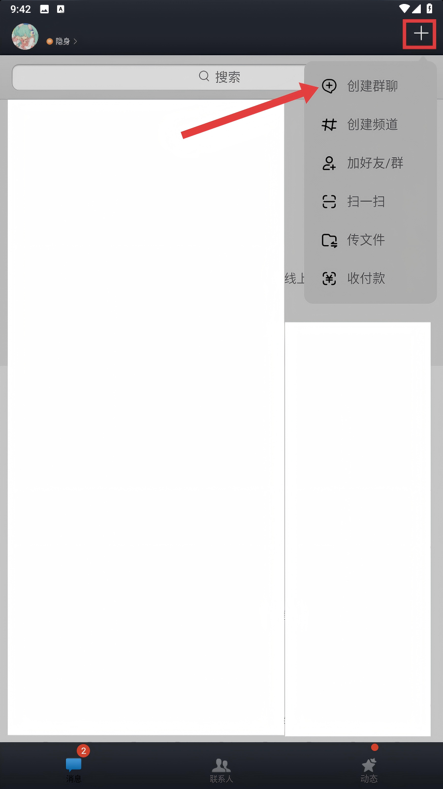 2、展开功能列表后,找到【创建群聊】选项,轻轻一点,就能开启建群的流程啦。