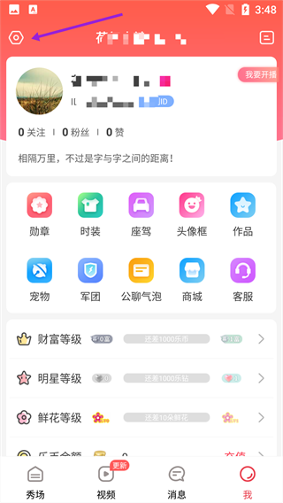 1、在“我”的页面,点击左上角的【设置】按钮。