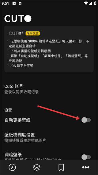 1、我们打开Cuto壁纸,点击底部右下角的三个点图标,进入功能菜单界面。