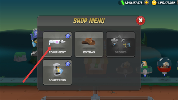2、在商店菜单中,选择EQUIPMENT选项进入装备页面。