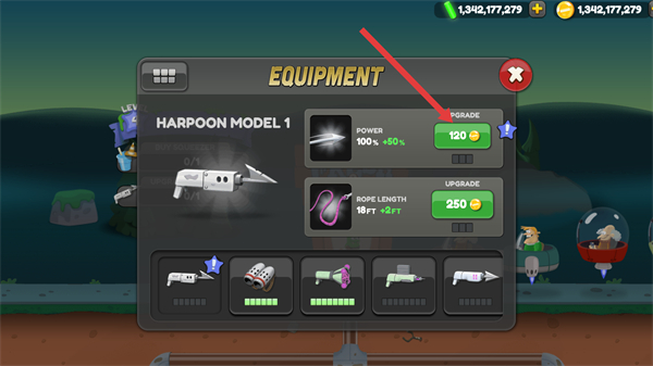 3、找到需要升级的装备属性,点击对应的UPGRADE按钮。