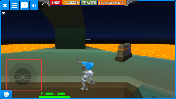 3、通过左侧虚拟摇杆控制机甲移动,瞄准目标射击。