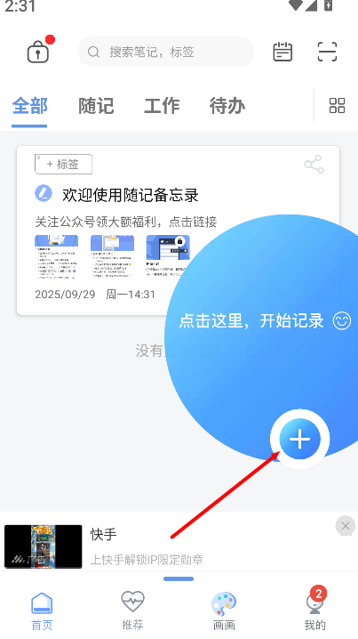 1、点击页面上的“+”号即可开始新建记录,可以快速进入编辑界面,方便随时保存内容。