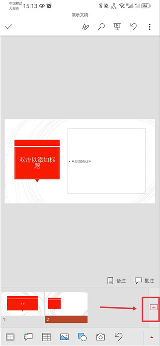 在下方文稿演示栏点击右侧+号按钮,即可添加空白页面。