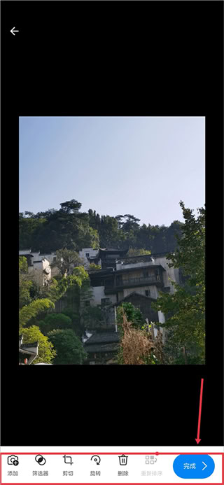 2、点击后进入手机图库,选择背景图片并点击完成,如需编辑可使用工具再次操作。