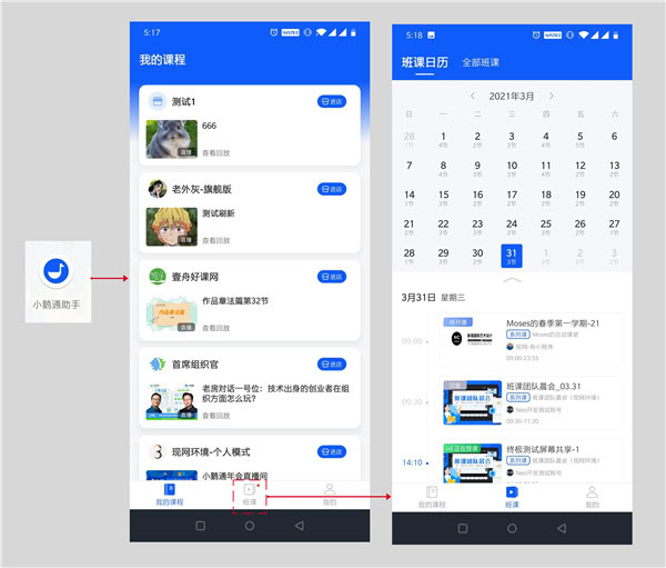 1、启动小鹅通客户端后,底部选择“班课”入口;