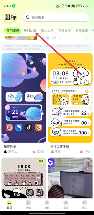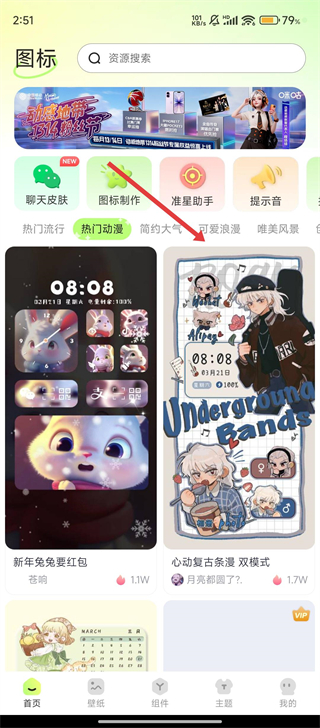 1、进入快捷换图标软件后,可选【热门动漫】等分类,挑选心仪的图标资源哦。