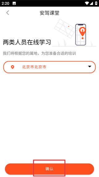 4、完成地区选择后,页面会显示已选地区,点击底部的【确认】按钮,即可进入对应地区的两类人员培训内容页面。